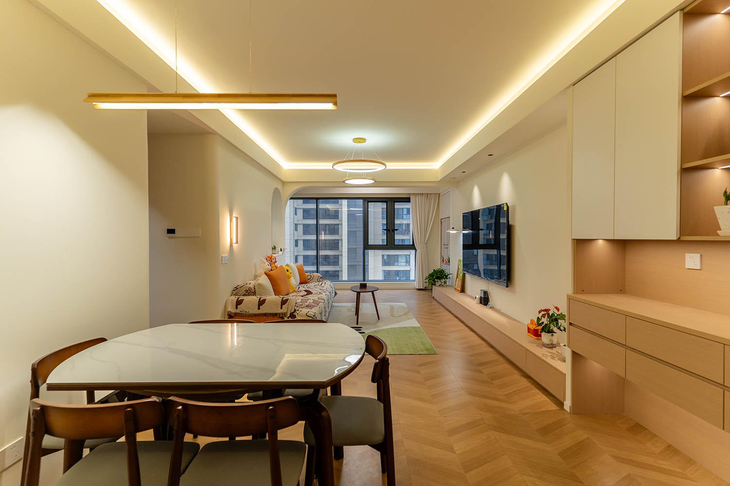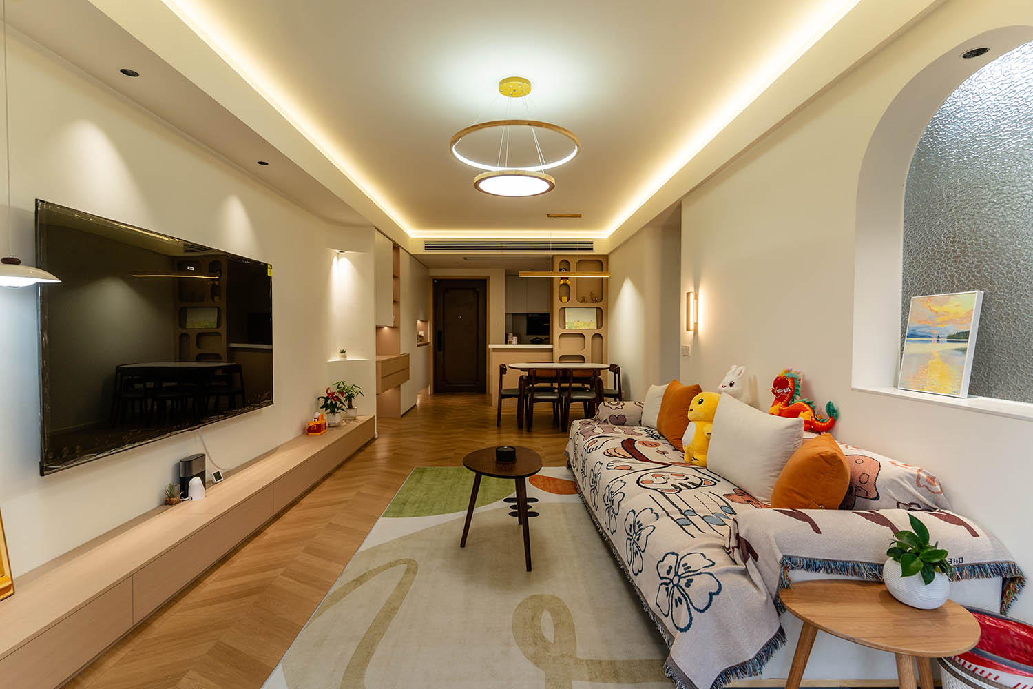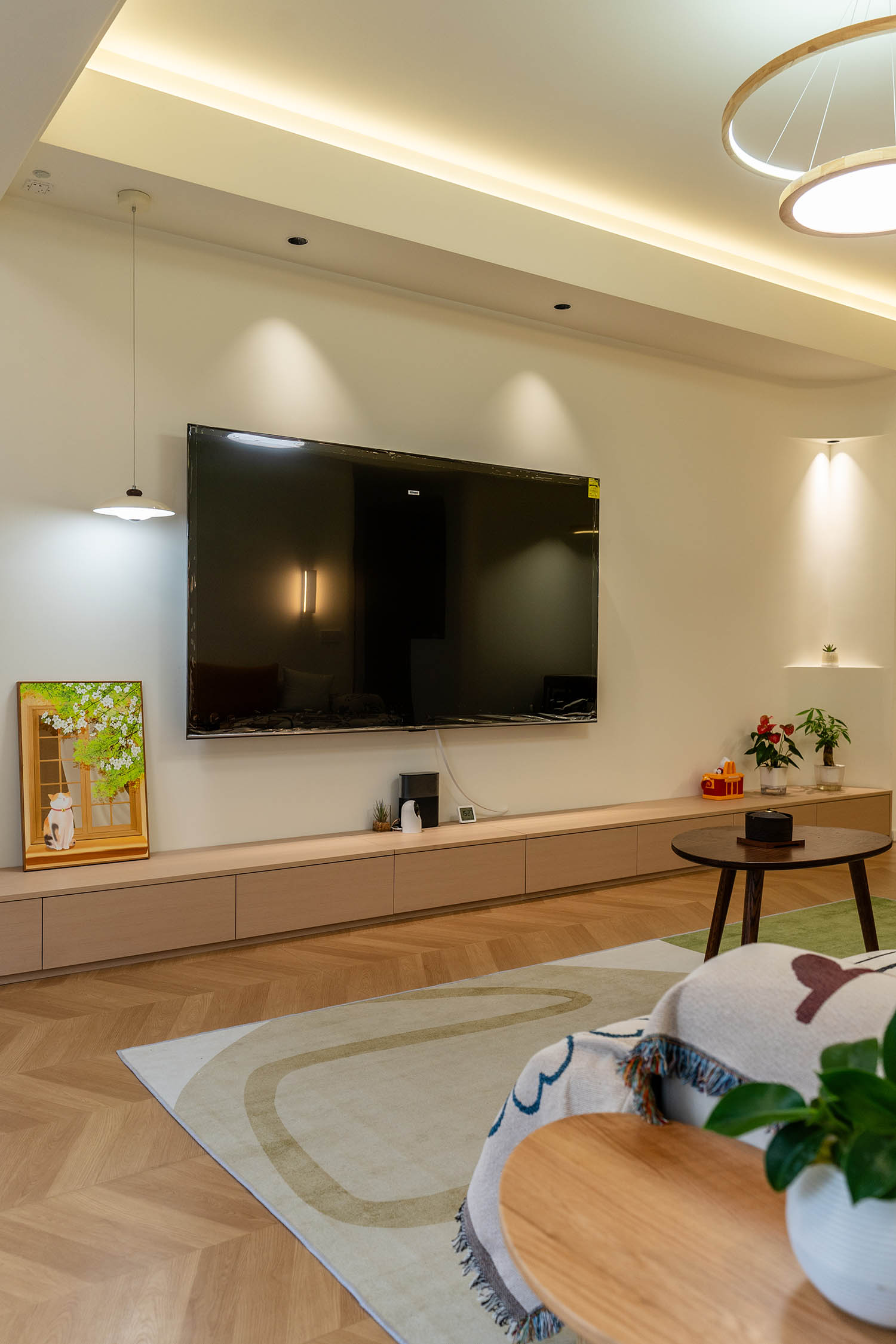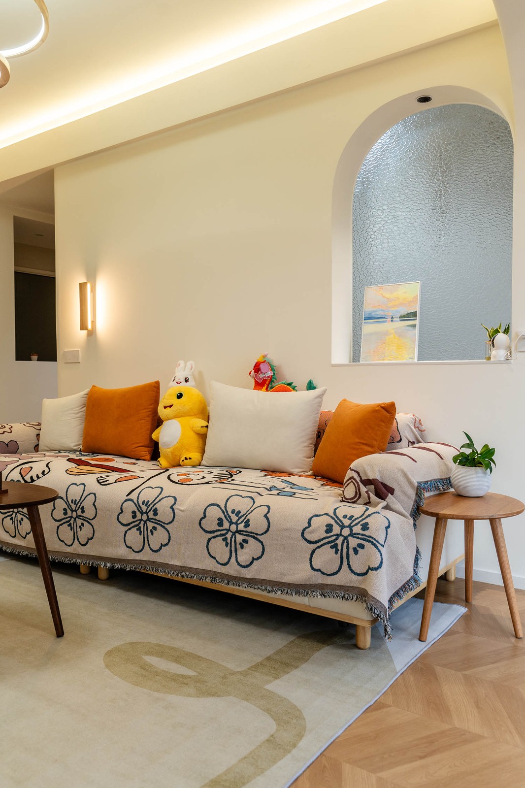 設(shè)計理念與空間基調(diào) 原木奶油風以低飽和度色彩、自然材質(zhì)與柔和線條為核心,在建發(fā)央著100㎡的戶型中,設(shè)計師通過奶油色基底與原木元素的融合,營造出溫暖治愈的居家氛圍。整體風格遵循“簡而不空”的原則,硬裝以簡約的幾何造型與流暢的動線為主,軟裝則強調(diào)材質(zhì)的天然感與舒適性,在實用性與美學之間找到完美平衡。 建發(fā)央著100㎡的原木奶油風,通過色彩、材質(zhì)與光影的巧妙平衡,將自然治愈感融入日常。既以開放式布局與智能收納滿足了現(xiàn)代生活的高效需求,又以弧形曲線與柔軟織物撫慰居者身心,真正詮釋了 “簡約中見細節(jié),溫柔中藏高級” 的居住理想。