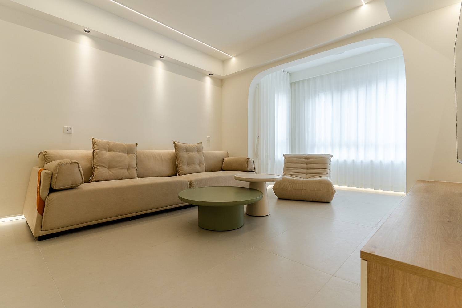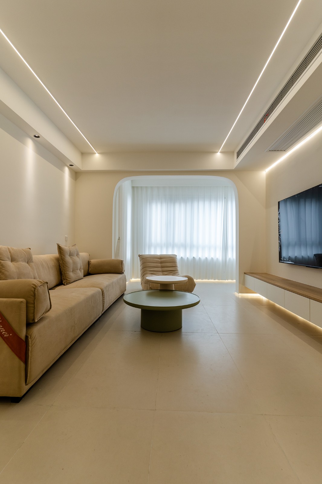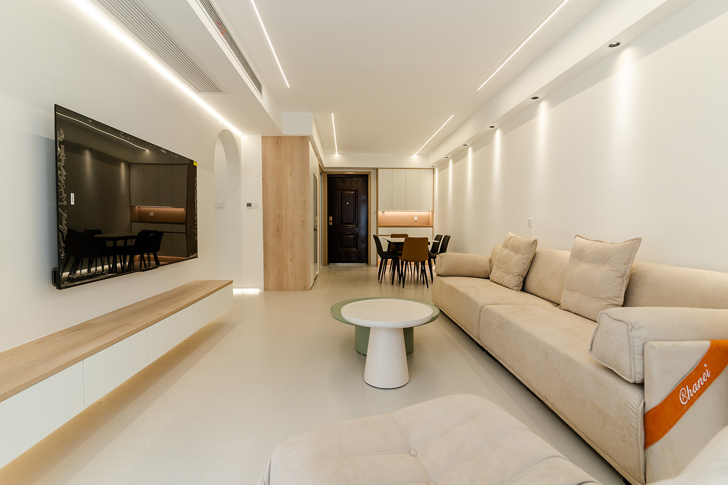 設(shè)計(jì)理念:溫柔包裹,簡約治愈 現(xiàn)代奶油風(fēng)的核心在于營造一種 "被溫柔包裹" 的治愈感。它摒棄了尖銳的棱角和冰冷的材質(zhì),通過微曲的線條、綿軟的質(zhì)感和溫暖的燈光,共同構(gòu)筑一個如云朵般輕盈、如奶茶般醇厚的空間氛圍。設(shè)計(jì)上追求 "簡于形,精于心" ,在滿足強(qiáng)大收納和流暢動線的基礎(chǔ)上,于細(xì)節(jié)處彰顯品質(zhì),讓每一天的歸家都成為一場被溫柔以待的儀式。 株洲美墅灣106平的現(xiàn)代奶油風(fēng)裝修,通過柔和的色彩、圓潤的線條和精心的材質(zhì)搭配,成功塑造了一個溫馨、舒適、實(shí)用且高顏值的居家空間。它非常適合追求生活品質(zhì)、喜愛柔和寧靜家居氛圍的家庭。