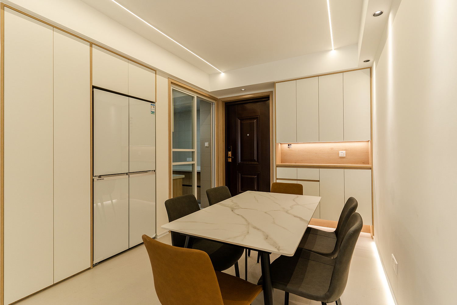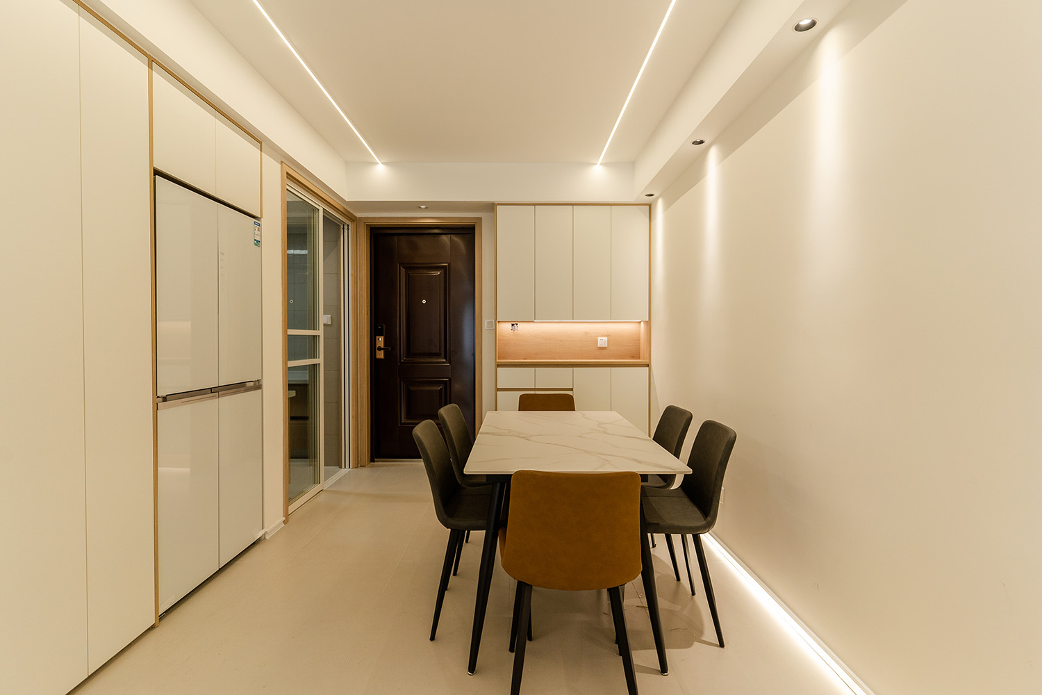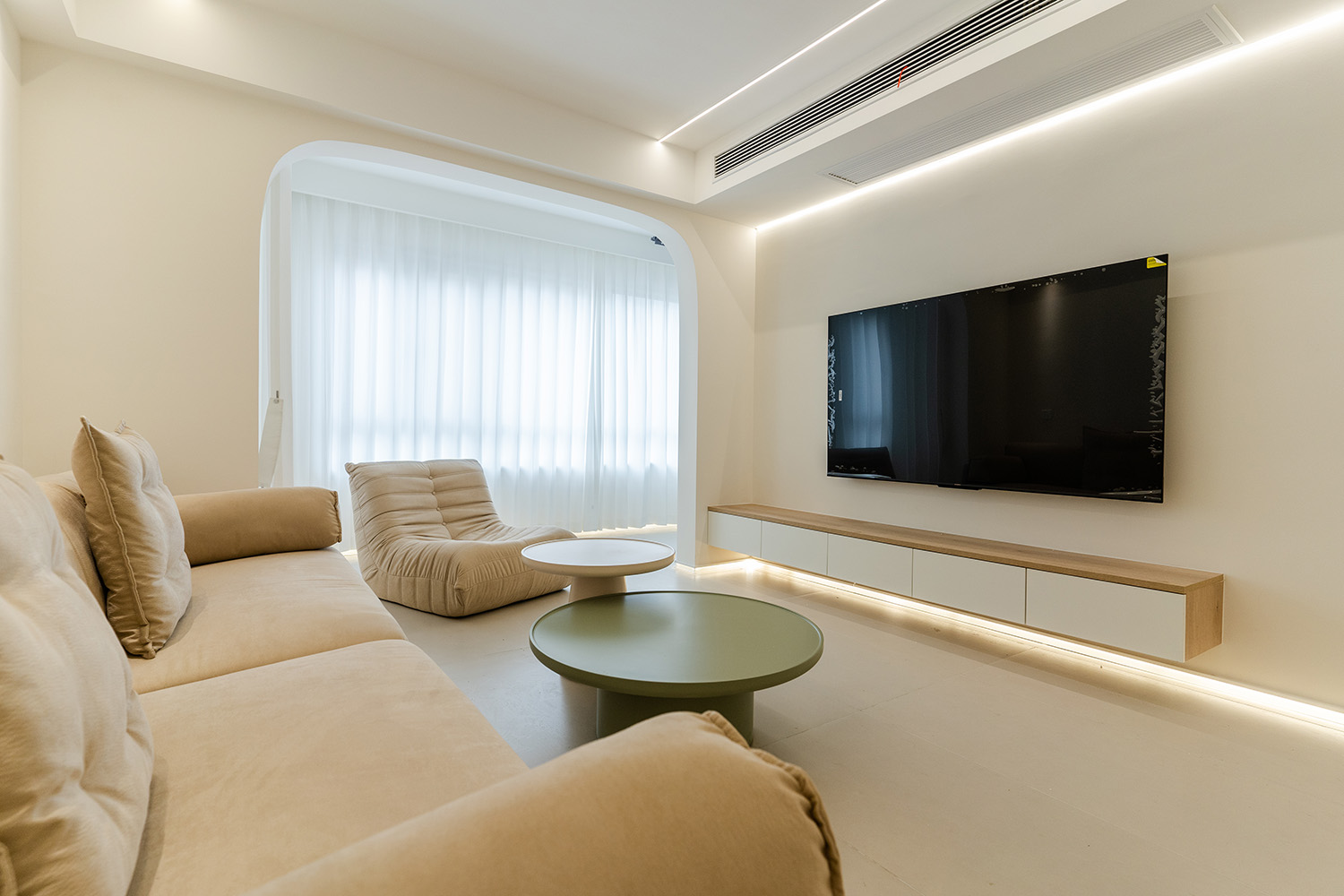 設(shè)計(jì)理念:溫柔包裹,簡約治愈 現(xiàn)代奶油風(fēng)的核心在于營造一種 "被溫柔包裹" 的治愈感。它摒棄了尖銳的棱角和冰冷的材質(zhì),通過微曲的線條、綿軟的質(zhì)感和溫暖的燈光,共同構(gòu)筑一個如云朵般輕盈、如奶茶般醇厚的空間氛圍。設(shè)計(jì)上追求 "簡于形,精于心" ,在滿足強(qiáng)大收納和流暢動線的基礎(chǔ)上,于細(xì)節(jié)處彰顯品質(zhì),讓每一天的歸家都成為一場被溫柔以待的儀式。 株洲美墅灣106平的現(xiàn)代奶油風(fēng)裝修,通過柔和的色彩、圓潤的線條和精心的材質(zhì)搭配,成功塑造了一個溫馨、舒適、實(shí)用且高顏值的居家空間。它非常適合追求生活品質(zhì)、喜愛柔和寧靜家居氛圍的家庭。