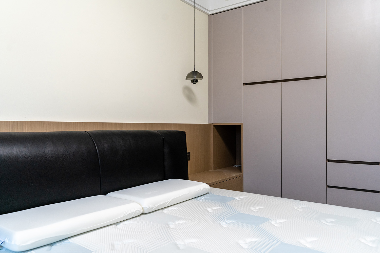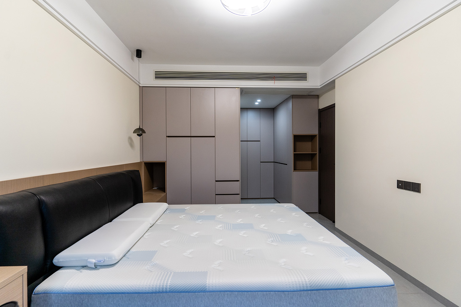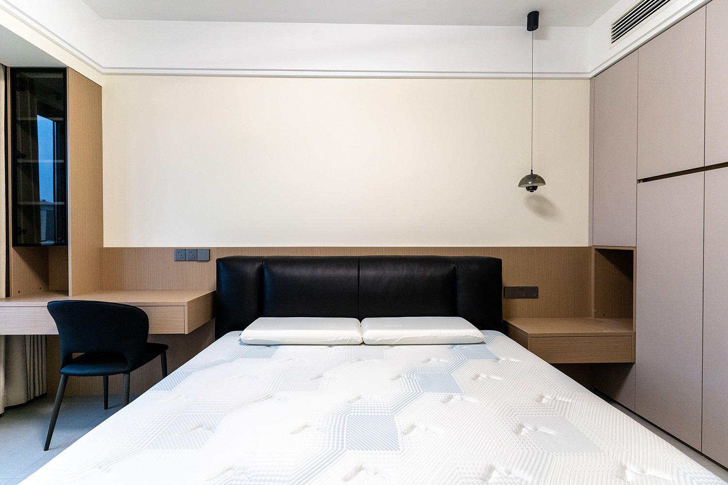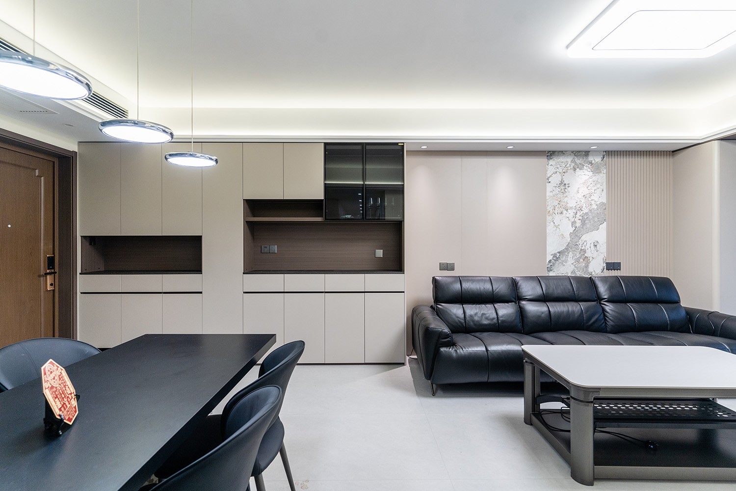 設計理念:定制化效率,沉浸式舒適 本案的核心設計理念是 “功能為綱,體驗為魂” 。旨在將115平米的空間視為一個高效運轉的精工系統。設計摒棄一切非必要的裝飾,將每一寸面積都轉化為提升居住品質的有效價值。通過科學動線、模塊化收納與智能人居的考量,為居者量身打造一個在視覺上極度清爽、在使用上極致便捷、在感受上無比放松的沉浸式居住體驗。