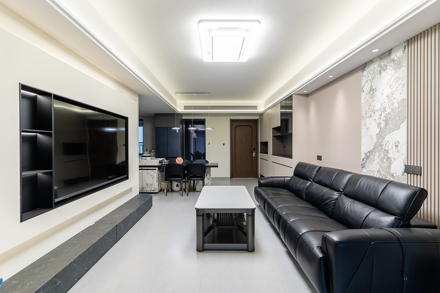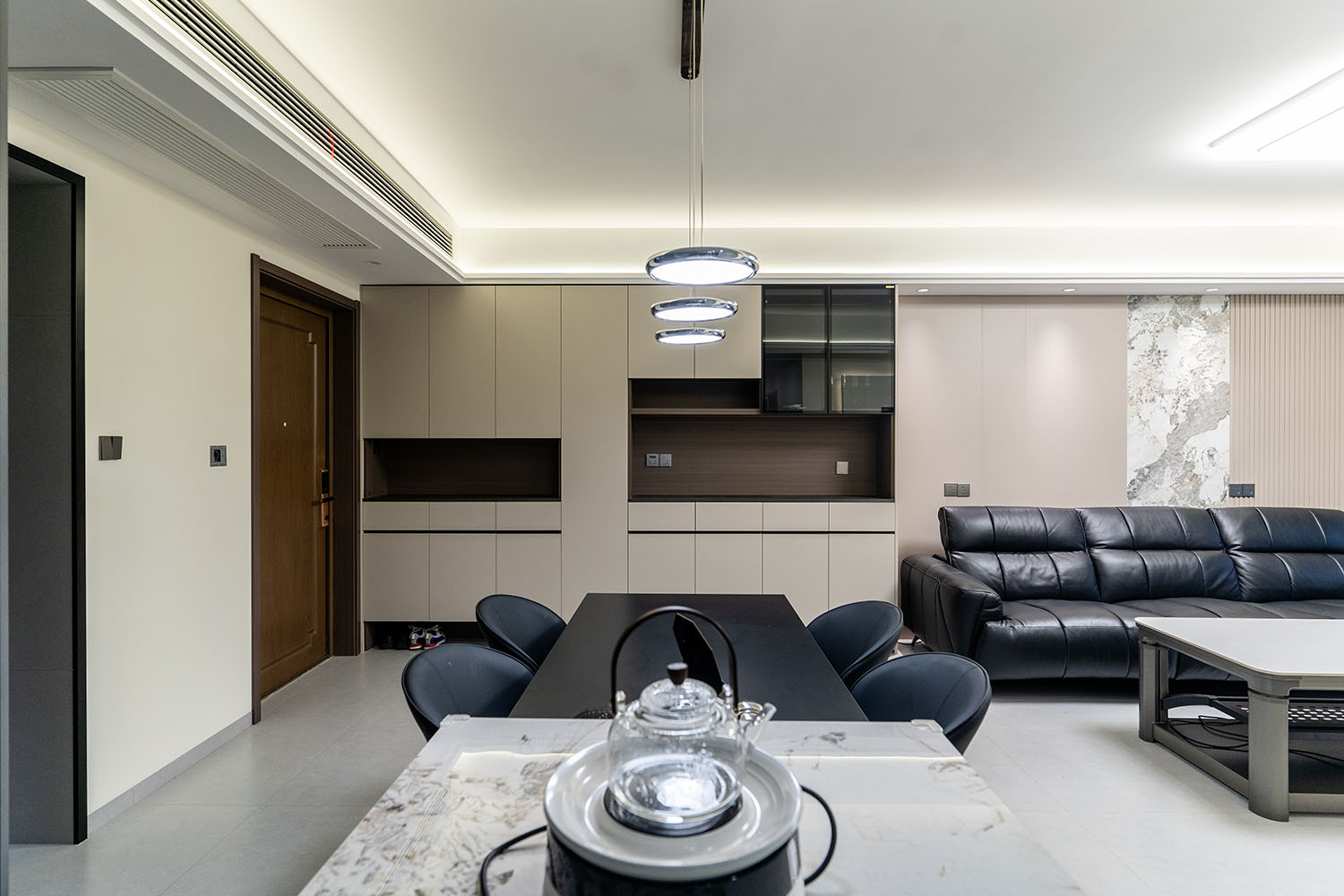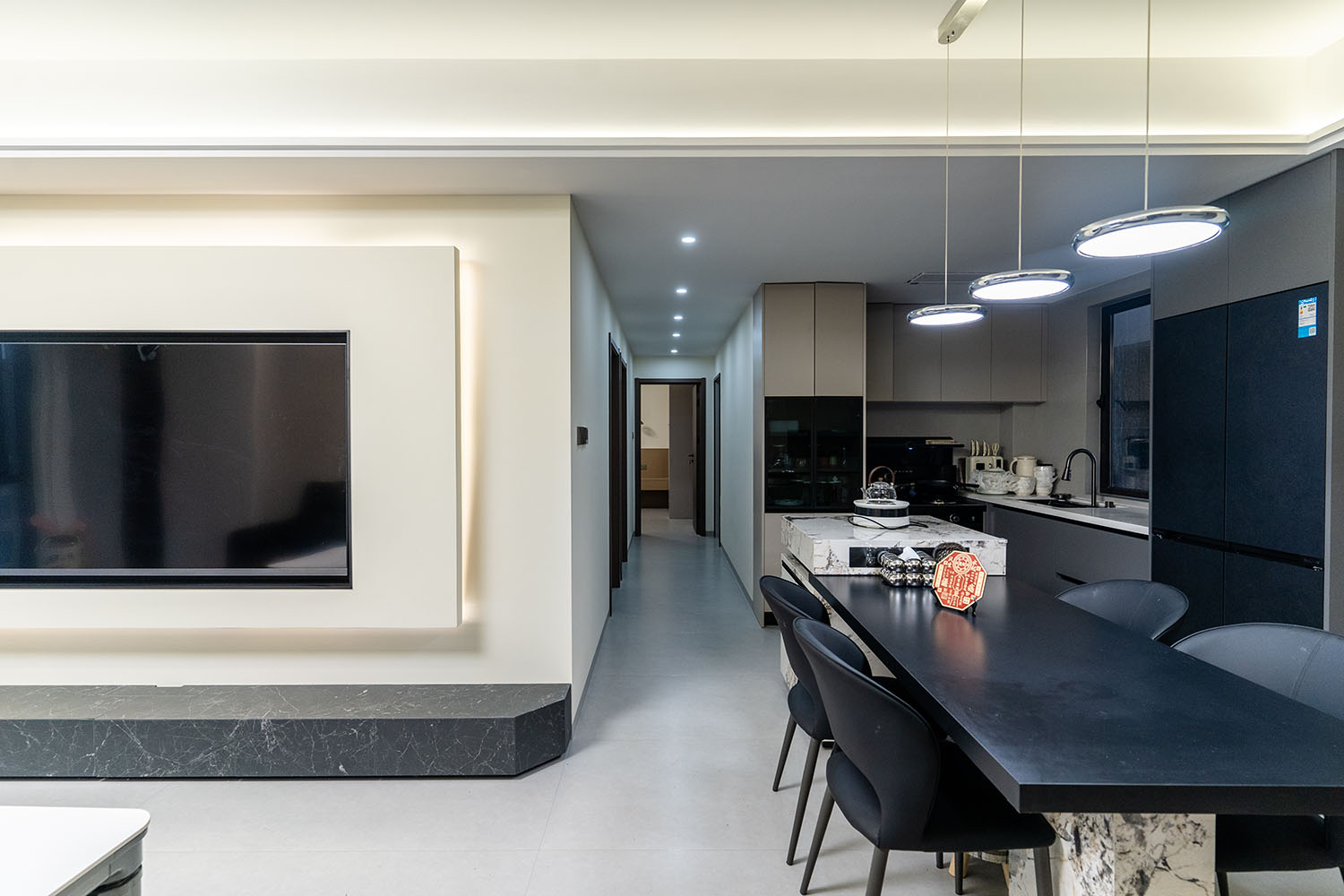 株洲建發(fā)央著115平米現(xiàn)代風(fēng)格,以 “功能為綱,體驗為魂” 為核心設(shè)計理念,將空間視為一個高效運(yùn)轉(zhuǎn)的精工系統(tǒng)。設(shè)計摒棄一切非必要的裝飾,將每一寸面積都轉(zhuǎn)化為提升居住品質(zhì)的有效價值,通過科學(xué)動線、模塊化收納與智能人居的考量,為居者量身打造一個在視覺上極度清爽、在使用上極致便捷、在感受上無比放松的沉浸式居住體驗。 本案的核心理念在于 “定制化效率,沉浸式舒適” ?,F(xiàn)代風(fēng)格強(qiáng)調(diào)功能與形式的統(tǒng)一,在115平米的三居室空間中,設(shè)計師以“少即是多”為原則,通過極簡的線條、克制的色彩和純粹的材料,打造一個干凈、通透且富有高級感的居住空間,滿足都市精英對高效、舒適生活的追求。 株洲建發(fā)央著115平米現(xiàn)代風(fēng)格空間,通過對功能、材質(zhì)、光影和收納的精準(zhǔn)把控,實現(xiàn)了“功能為綱,體驗為魂”的設(shè)計理想。用幾何切割光影,用反差喚醒空間靈魂,每一處設(shè)計都在回應(yīng)著現(xiàn)代家庭對品質(zhì)、舒適與美學(xué)的多重需求。 褪去浮華,回歸本真。在黑白灰的底色里,一盞暖調(diào)落地?zé)羰巧钜沟呐惆?,一株綠植是呼吸的自然注解,灰調(diào)沙發(fā)上的褶皺藏著生活的溫度??酥?,是為了讓真正重要的事物發(fā)光。 當(dāng)腳步的回聲被墻壁溫柔包裹,那些刻意保留的留白,恰是造景?,F(xiàn)代之境,是對生活本真的追尋,是對內(nèi)心寧靜的向往——讓我們在快節(jié)奏的都市生活中,尋得一片可以放慢腳步、沉淀心靈的凈土,感受生活最純粹的美好。 這不僅僅是一個居住空間,更是一個能夠承載日常詩意、安放生活想象的精工范本。在理性的空間秩序中,譜寫出感性的生活詩篇。