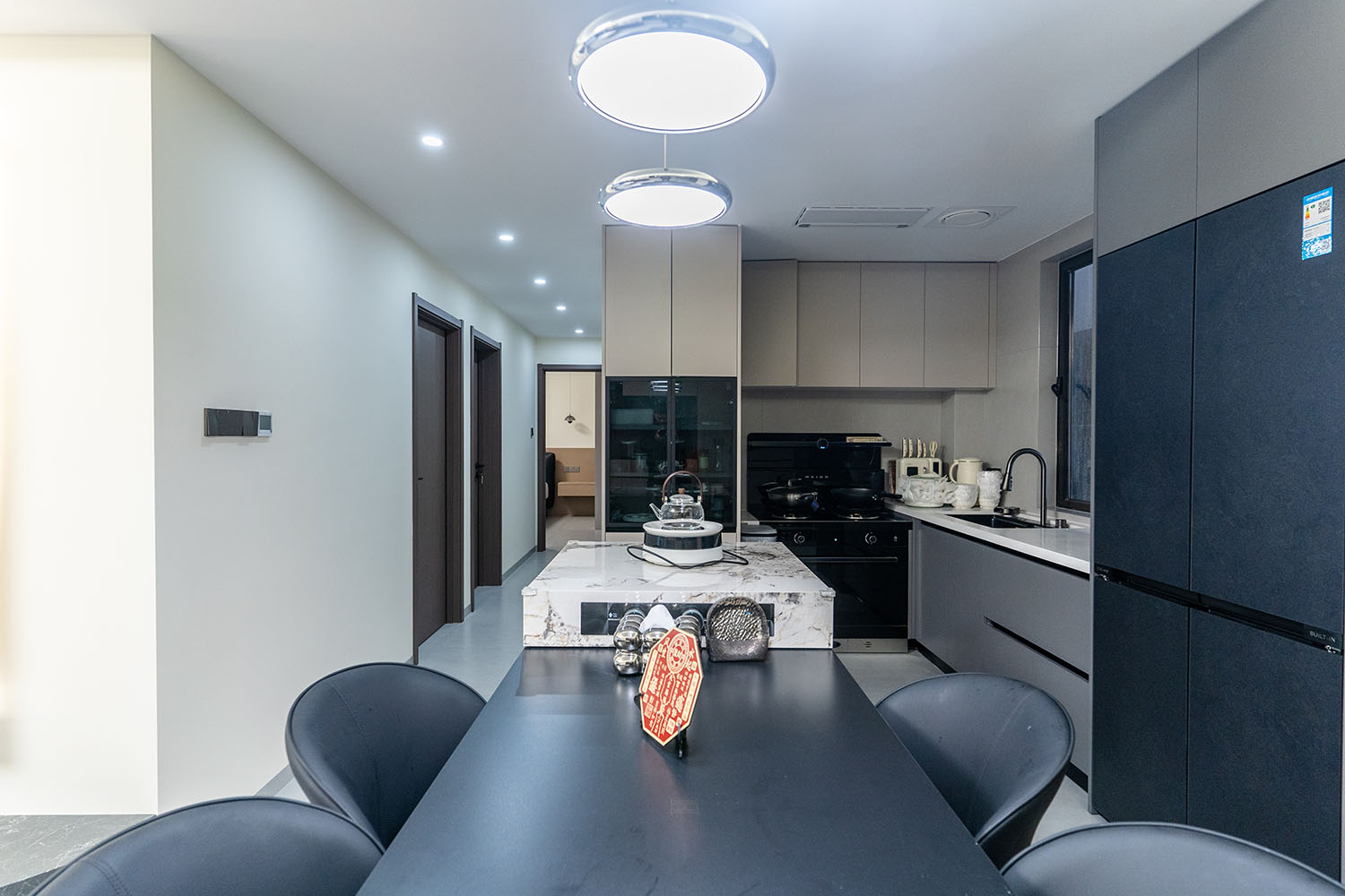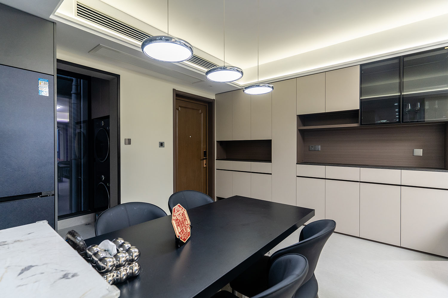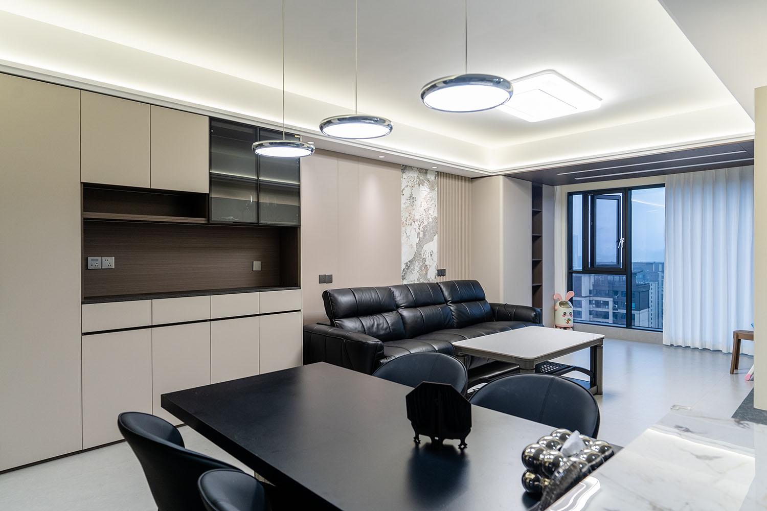 株洲建發(fā)央著115平米現(xiàn)代風(fēng)格,以 “功能為綱,體驗為魂” 為核心設(shè)計理念,將空間視為一個高效運(yùn)轉(zhuǎn)的精工系統(tǒng)。設(shè)計摒棄一切非必要的裝飾,將每一寸面積都轉(zhuǎn)化為提升居住品質(zhì)的有效價值,通過科學(xué)動線、模塊化收納與智能人居的考量,為居者量身打造一個在視覺上極度清爽、在使用上極致便捷、在感受上無比放松的沉浸式居住體驗。 本案的核心理念在于 “定制化效率,沉浸式舒適” ?,F(xiàn)代風(fēng)格強(qiáng)調(diào)功能與形式的統(tǒng)一,在115平米的三居室空間中,設(shè)計師以“少即是多”為原則,通過極簡的線條、克制的色彩和純粹的材料,打造一個干凈、通透且富有高級感的居住空間,滿足都市精英對高效、舒適生活的追求。 株洲建發(fā)央著115平米現(xiàn)代風(fēng)格空間,通過對功能、材質(zhì)、光影和收納的精準(zhǔn)把控,實現(xiàn)了“功能為綱,體驗為魂”的設(shè)計理想。用幾何切割光影,用反差喚醒空間靈魂,每一處設(shè)計都在回應(yīng)著現(xiàn)代家庭對品質(zhì)、舒適與美學(xué)的多重需求。 褪去浮華,回歸本真。在黑白灰的底色里,一盞暖調(diào)落地?zé)羰巧钜沟呐惆?,一株綠植是呼吸的自然注解,灰調(diào)沙發(fā)上的褶皺藏著生活的溫度??酥?,是為了讓真正重要的事物發(fā)光。 當(dāng)腳步的回聲被墻壁溫柔包裹,那些刻意保留的留白,恰是造景?,F(xiàn)代之境,是對生活本真的追尋,是對內(nèi)心寧靜的向往——讓我們在快節(jié)奏的都市生活中,尋得一片可以放慢腳步、沉淀心靈的凈土,感受生活最純粹的美好。 這不僅僅是一個居住空間,更是一個能夠承載日常詩意、安放生活想象的精工范本。在理性的空間秩序中,譜寫出感性的生活詩篇。