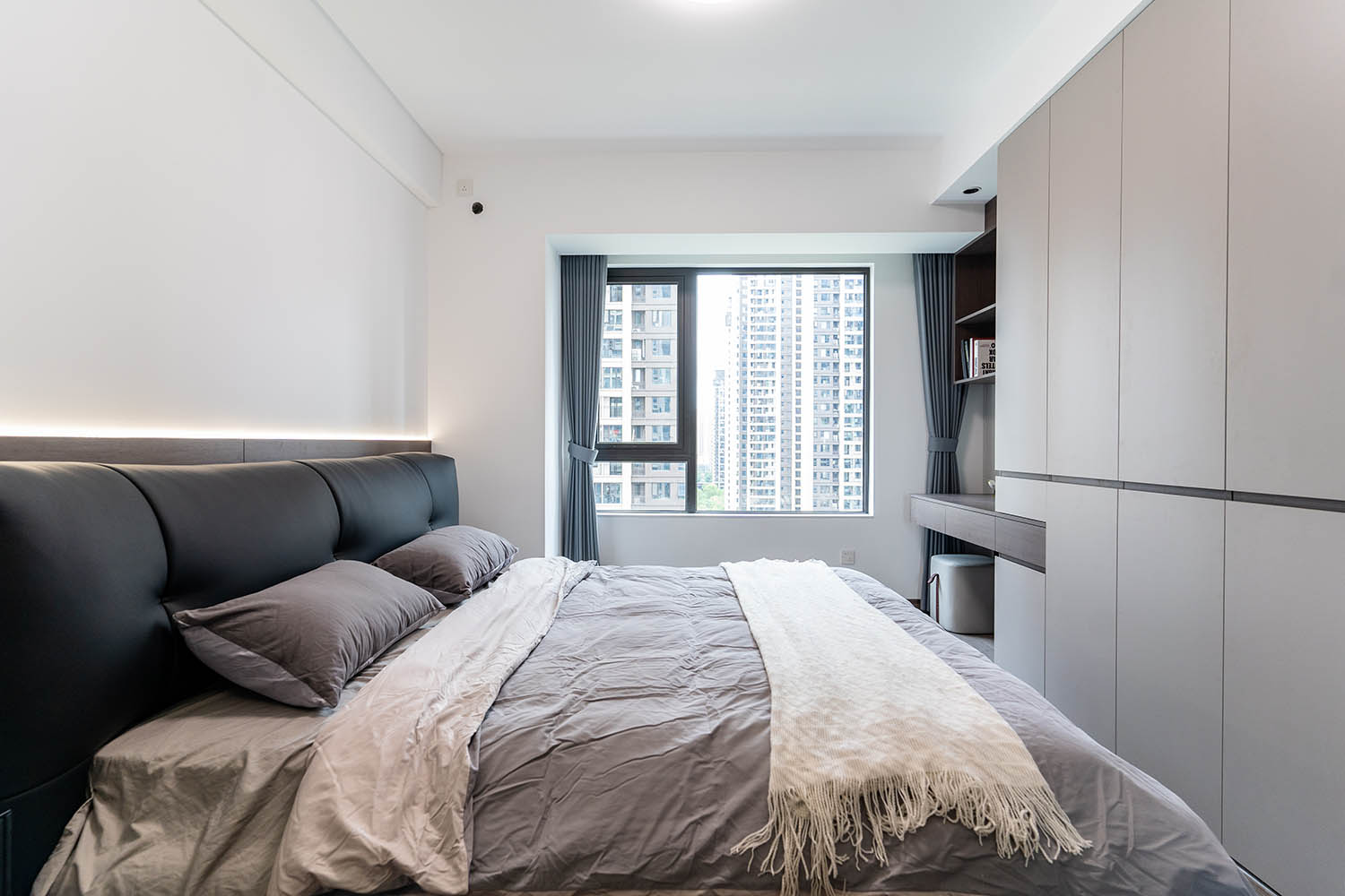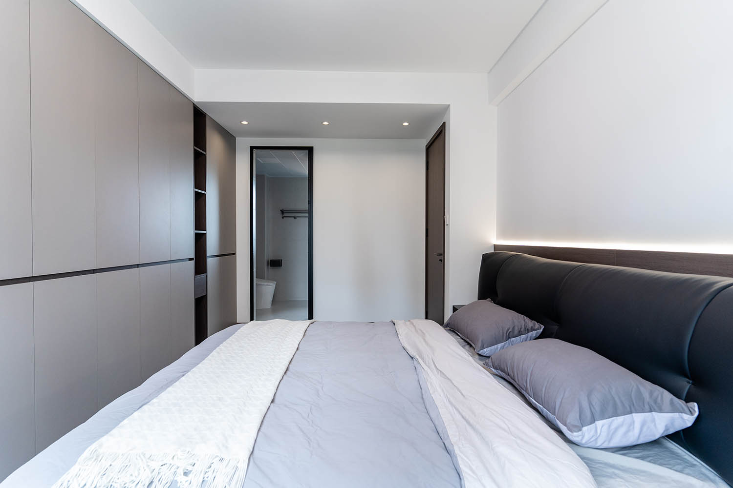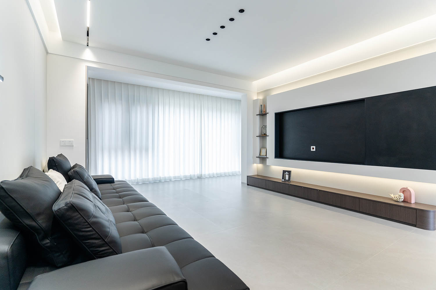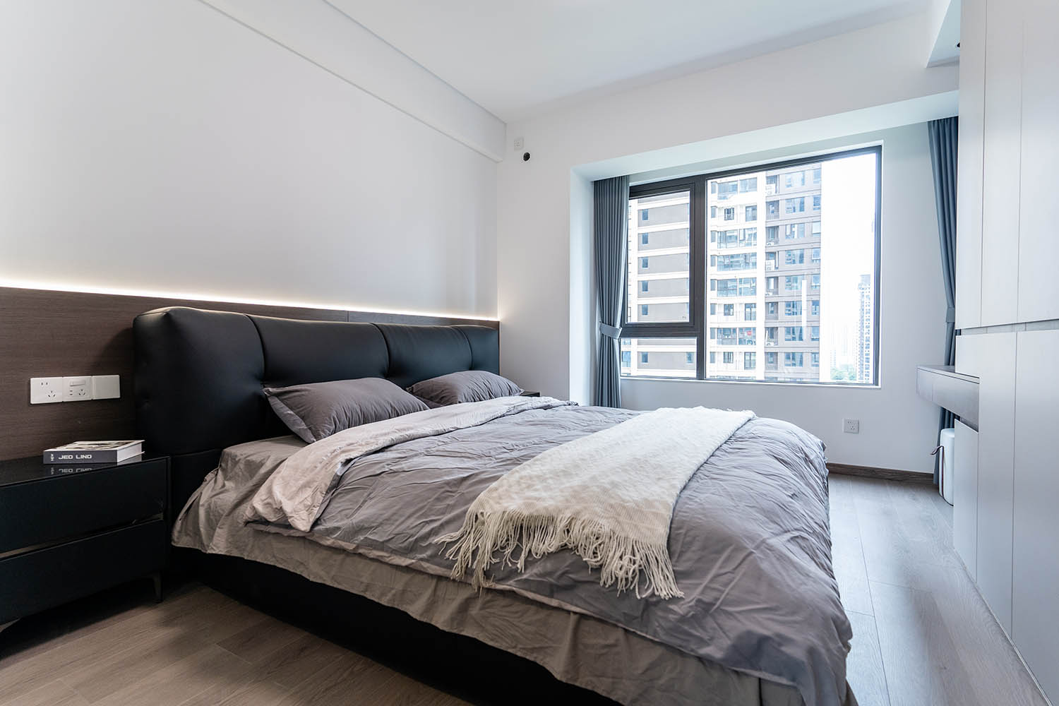 用黑、白、灰的經典碰撞,詮釋意式極簡的「做減法的藝術」。沒有冗余裝飾,以利落線條、純粹色調,讓空間回歸「實用與質感共生」的本質,每一處都藏著 “用必要定義高級” 的設計智慧。 無主燈設計 + 線性燈帶,讓光線柔和包裹空間;黑色皮質沙發(fā)簡化形態(tài),與灰色背景墻呼應,詮釋意式「隱于簡的高級感」,舍去繁雜裝飾,還原空間本真互動場域。每一寸存在都值得被凝視,讓走過空間的人,忍不住贊嘆這份 “不動聲色的精致” 。
