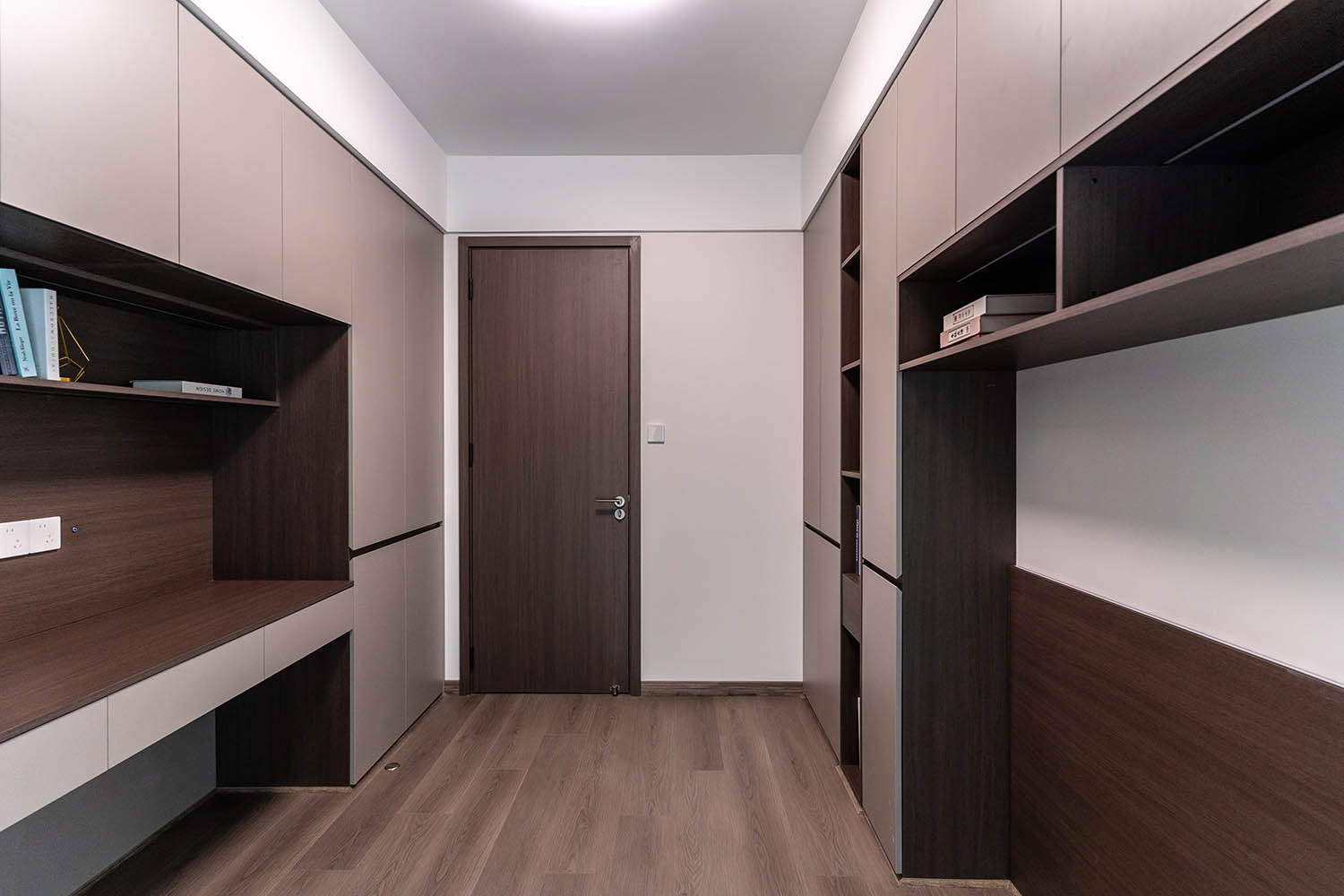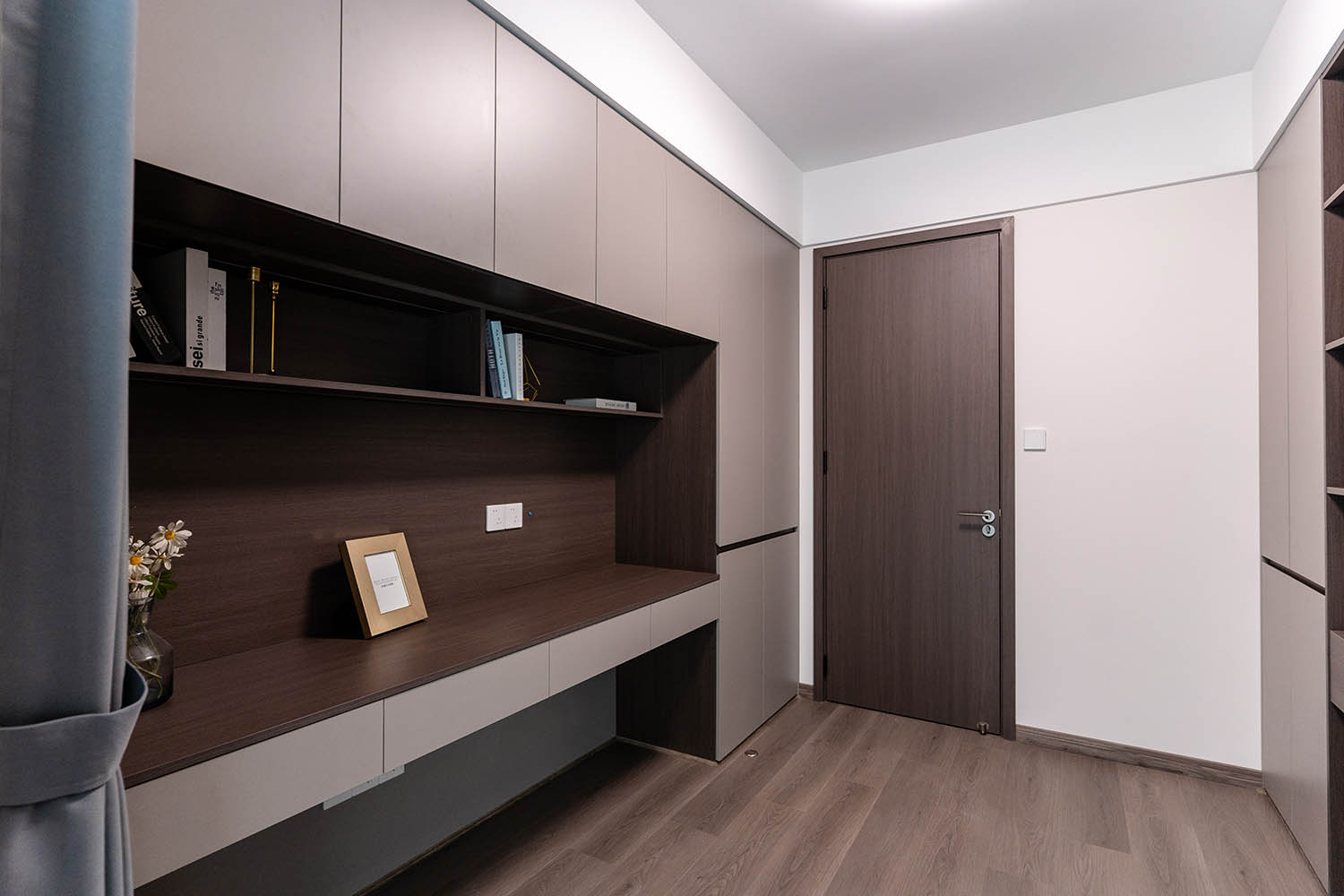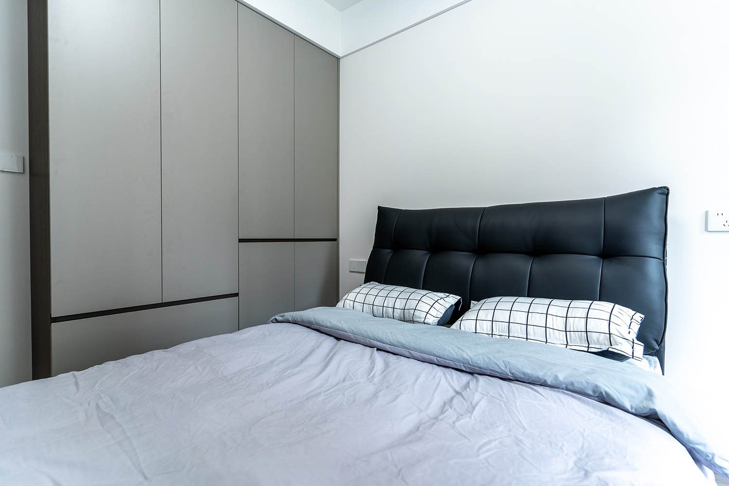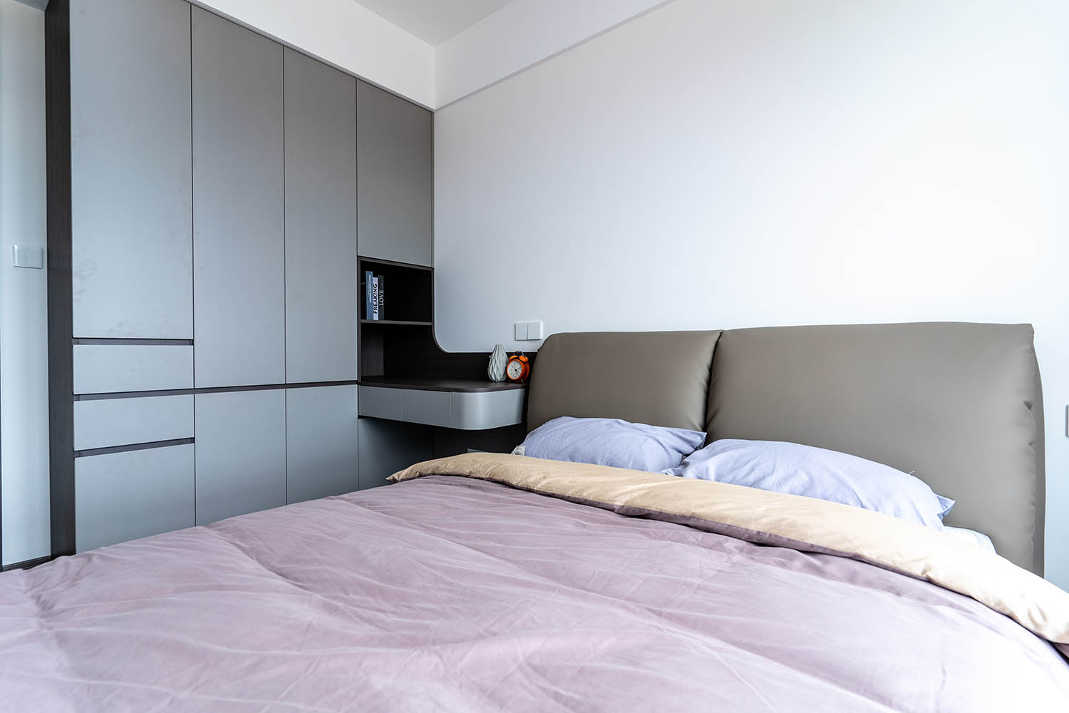 用黑、白、灰的經典碰撞,詮釋意式極簡的「做減法的藝術」。沒有冗余裝飾,以利落線條、純粹色調,讓空間回歸「實用與質感共生」的本質,每一處都藏著 “用必要定義高級” 的設計智慧。 無主燈設計 + 線性燈帶,讓光線柔和包裹空間;黑色皮質沙發(fā)簡化形態(tài),與灰色背景墻呼應,詮釋意式「隱于簡的高級感」,舍去繁雜裝飾,還原空間本真互動場域。每一寸存在都值得被凝視,讓走過空間的人,忍不住贊嘆這份 “不動聲色的精致” 。