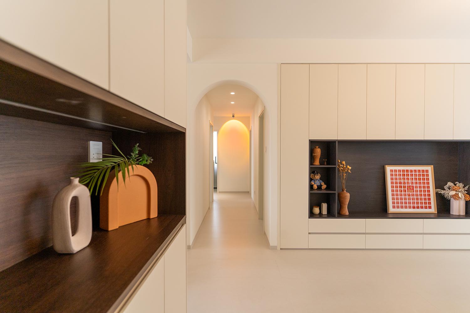 株洲金水灣115㎡奶油中古風(fēng)設(shè)計說明 本案以奶油中古風(fēng)為基調(diào),融合復(fù)古韻味與現(xiàn)代舒適,打造一個兼具懷舊情調(diào)與溫馨氛圍的居住空間。設(shè)計通過低飽和奶油色系、中古風(fēng)格家具、自然材質(zhì)的搭配,營造出優(yōu)雅且松弛的生活場景,讓居者在經(jīng)典與現(xiàn)代的交織中感受時光的溫度。本案以奶油色的溫柔包裹中古風(fēng)的厚重,在現(xiàn)代簡約與復(fù)古懷舊之間找到平衡。既有歲月沉淀的敘事感,又不失宜居的舒適度,讓家成為承載生活與審美的容器。
