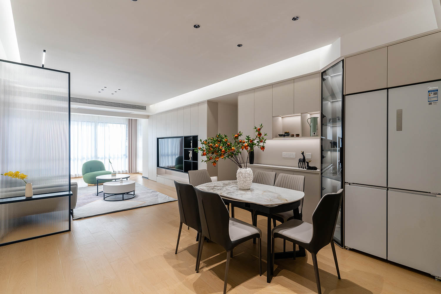 本案以“現(xiàn)代奶油風”為基調(diào),融合柔和的曲線、溫暖的色調(diào)和極簡的布局,打造出一個輕盈通透、充滿治愈感的理想居所。設(shè)計師通過低飽和色彩、自然材質(zhì)與軟糯的家具搭配,讓空間既溫馨又不失高級感,完美契合年輕家庭對舒適與美學的雙重追求。