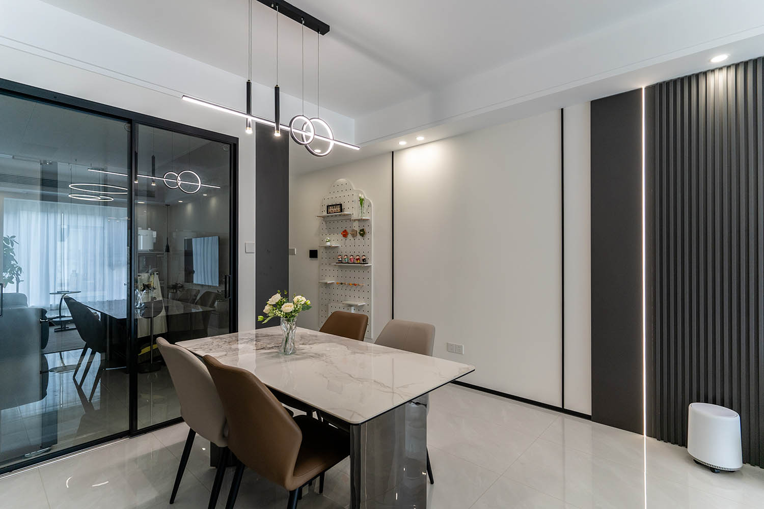這套株洲金茂悅102㎡的現(xiàn)代黑白灰風(fēng)格家居,通過克制的色彩運(yùn)用、簡(jiǎn)潔利落的線條、豐富質(zhì)感的材質(zhì)搭配以及智慧收納規(guī)劃,成功打造了一個(gè)不僅高級(jí)時(shí)尚,而且極度舒適與實(shí)用的居住空間。它證明了簡(jiǎn)約不等于簡(jiǎn)單,在冷峻的外表下,也可以蘊(yùn)藏著對(duì)生活溫度的細(xì)致關(guān)照。