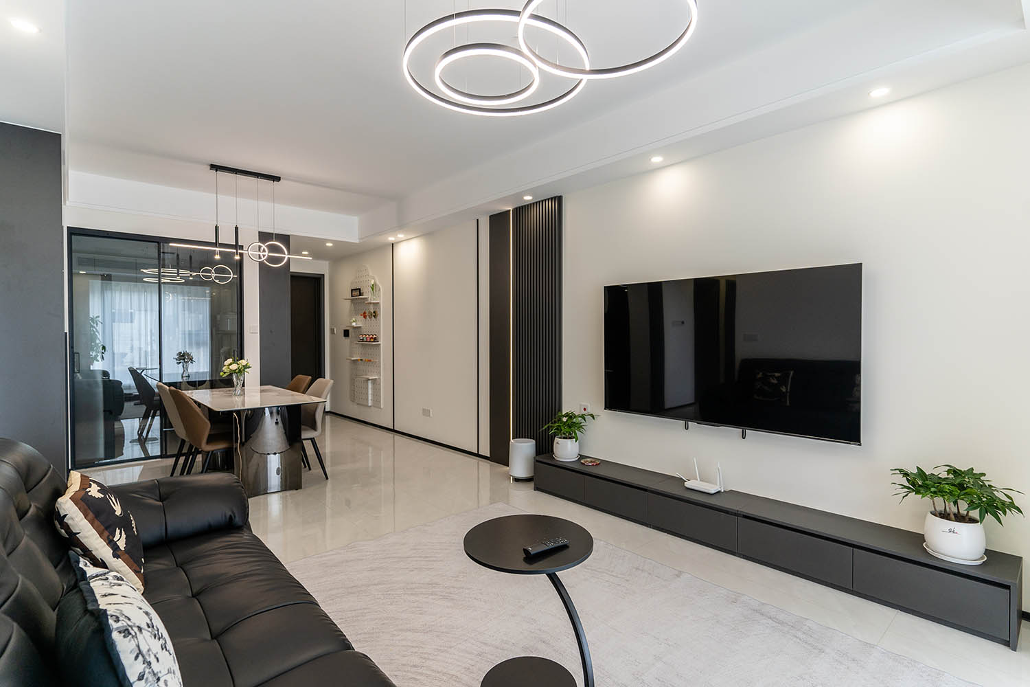 這套位于株洲金茂悅的102㎡現(xiàn)代黑白灰風(fēng)格家居,巧妙運(yùn)用黑白灰基調(diào),融入利落線條、質(zhì)感材質(zhì)和智慧收納,打造出一個(gè)既簡(jiǎn)約大氣又舒適實(shí)用的現(xiàn)代居所。下面我們來(lái)細(xì)致賞析其設(shè)計(jì)亮點(diǎn)。